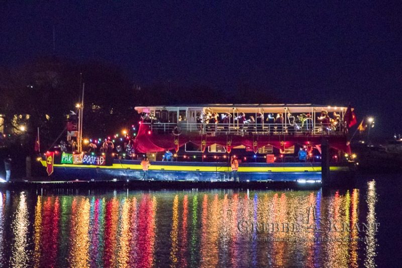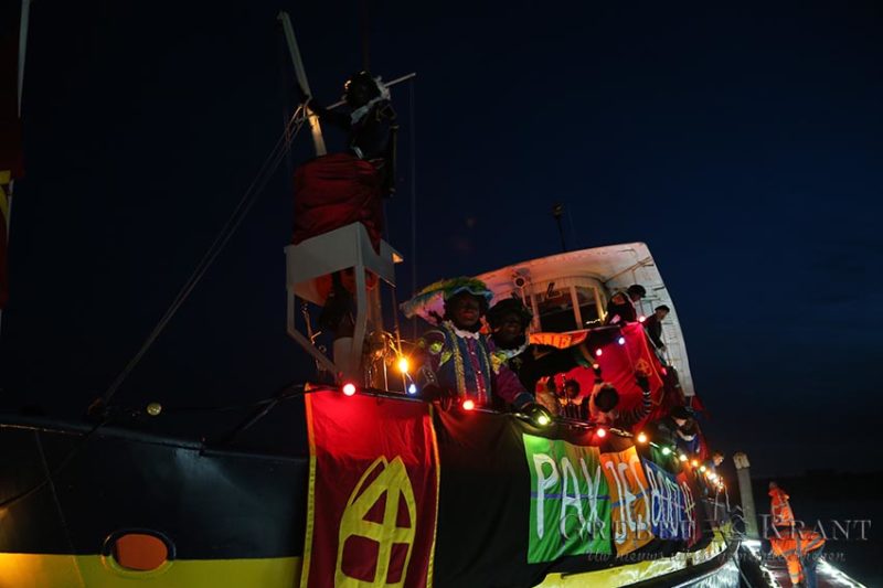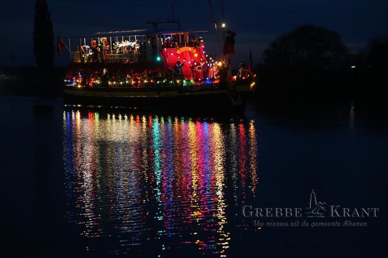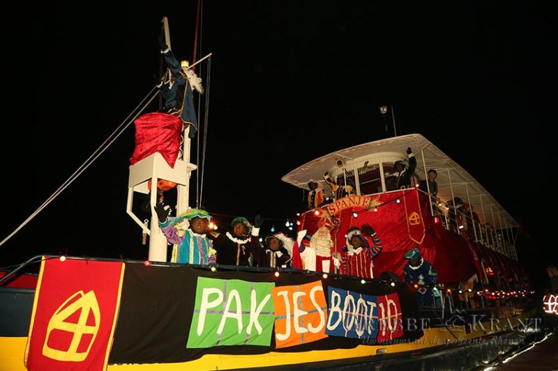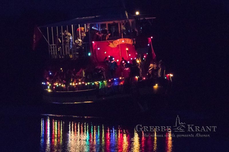 Rhenen – De reis verliep niet geheel voorspoedig met de boot, stoomtrein en dan weer met de boot. Bovendien moesten de kinderen wat langer wachten omdat de goedheiligman met zijn zwarte Pieten eerst andere plaatsen aan moest doen. Rond de klok van 17:30 was het dan eindelijk zo ver. De vrolijk gekleurde en verlichte boot kwam in zicht waarna de jachthaven bijna leek te ontploffen. Zingende en gillende kinderen gaven de Sint een oorverdovend welkom nog voordat de boot was aangemeerd.