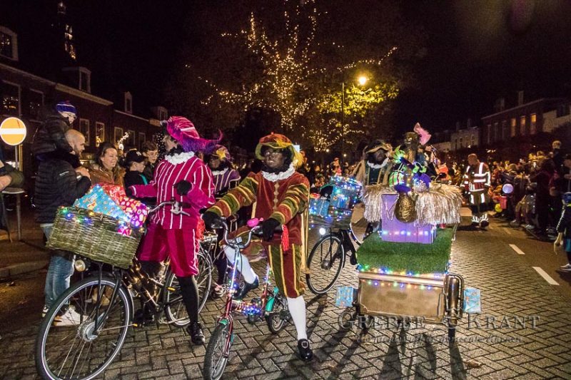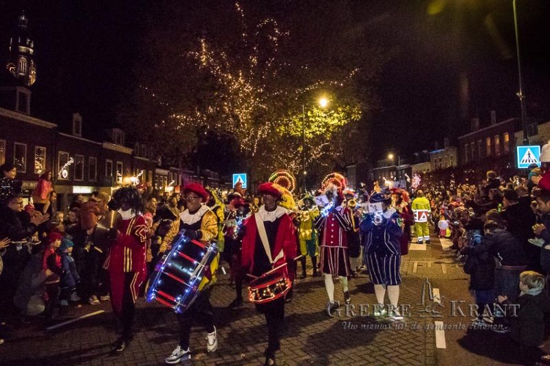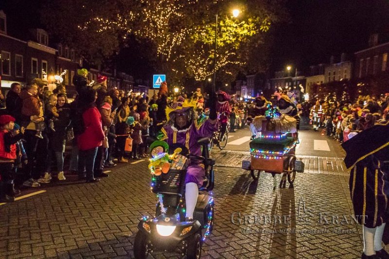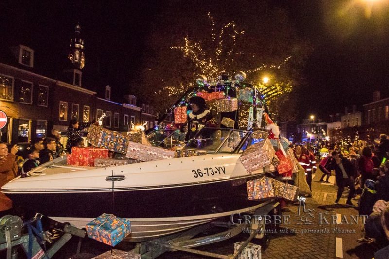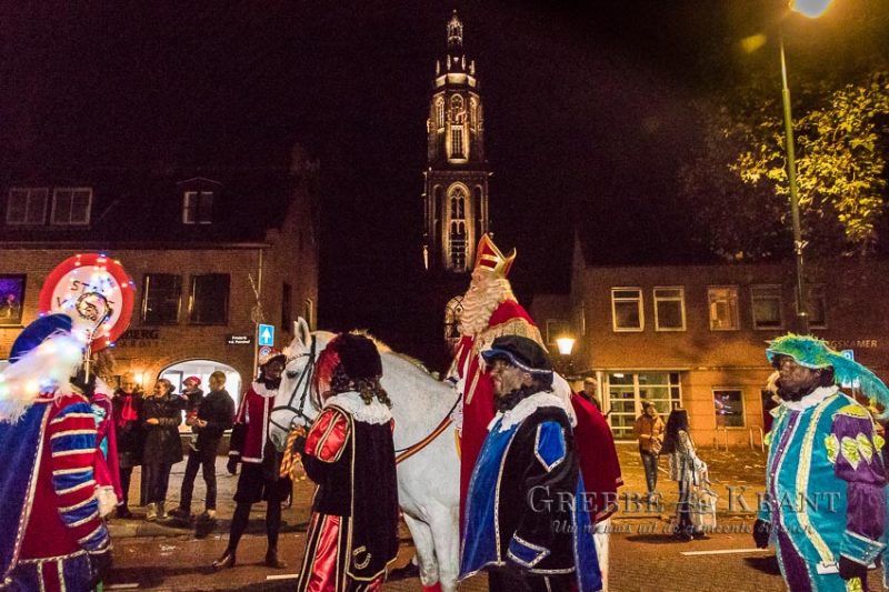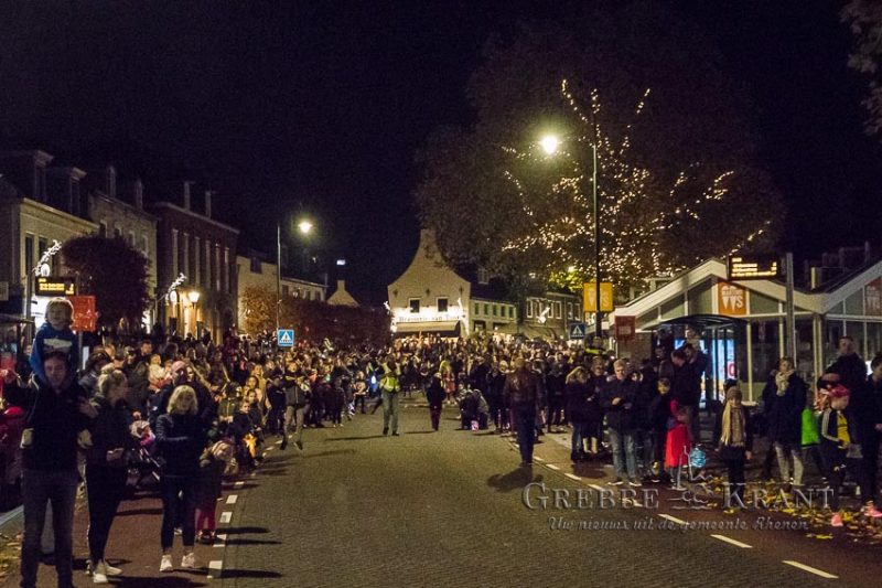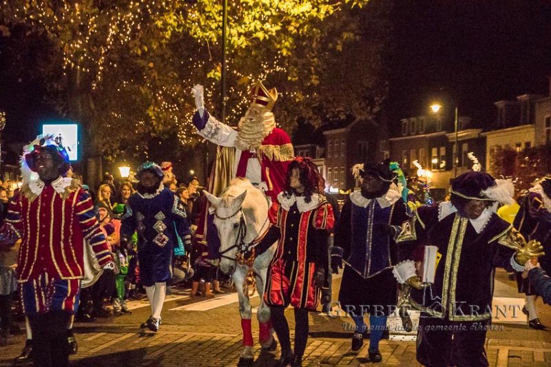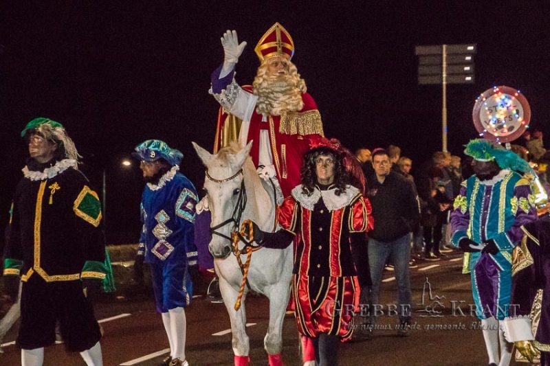 Rhenen – Helaas mochten de kinderen niet bij de aankomst per boot aanwezig zijn maar in plaats daarvan kwam de Sint en zijn Pieten met een parade door de stad. Het publiek was in grote getale op de parade afgekomen. Op zijn paard Ozosnel trok de goedheiligman tussen het lang gerekte lint van publiek door terwijl de muziekpieten een vrolijk deuntje ten gehore brachten.