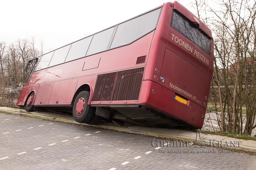 HH_0301_1551 Rhenen, 1 maart 2020. Bus hangt over talud parkeerplaats NS station. Fotograaf: Hans Hoekstra