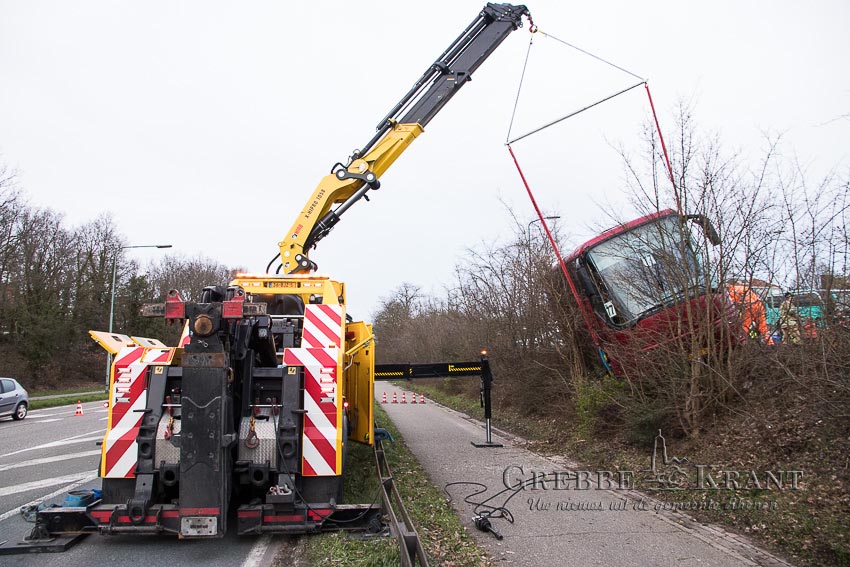 HH_0301_1806 Rhenen, 1 maart 2020. Bus hangt over talud parkeerplaats NS station. Fotograaf: Hans Hoekstra