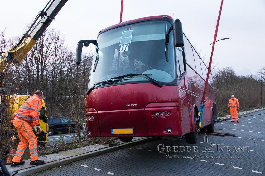 HH_0301_1820 Rhenen, 1 maart 2020. Bus hangt over talud parkeerplaats NS station. Fotograaf: Hans Hoekstra