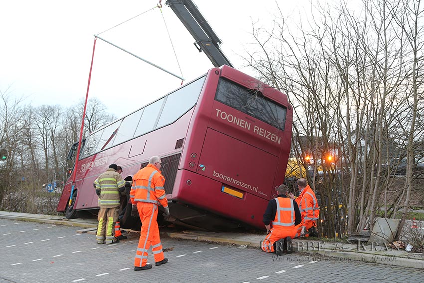 Rhenen, 01 maart 2020. Bus rijdt van talud. Fotograaf: Peter Kuhl.