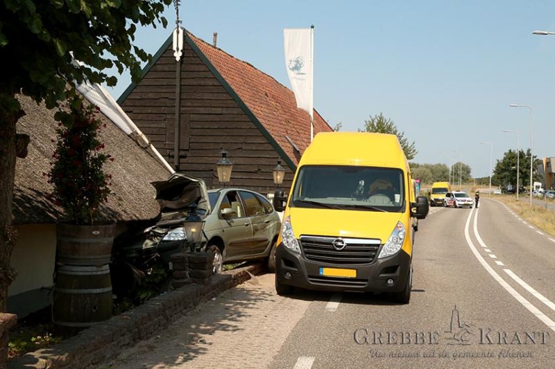 De bestuurster van de personenauto heeft daarbij lichte verwondingen opgelopen en is door ambulancepersoneel ter plaatse behandeld. De schade aan de auto en de gevel van het restaurant is aanzienlijk. De bestuurder van de bestelbus bleef ongedeerd. De politie heeft de toedracht van het ongeval in onderzoek.