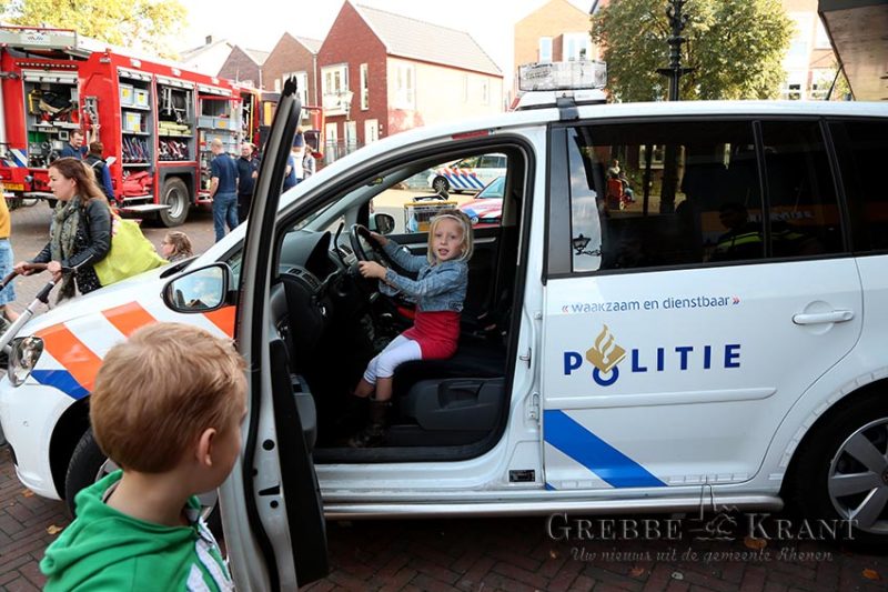 De brandweerpost Rhenen-Achterberg was met een brandweervoertuig aanwezig dat door de aanwezige kinderen “grondig werd geïnspecteerd”. Ook konden de kinderen deel nemen aan behendigheidsspelletjes met een waterslang. De politie showde een nieuwe politiemotor, een ME-busje kon van binnen bekeken worden en in het Mobile Media Lab (MML) konden kinderen kijken door de ogen van een agent en zien hoe deze zijn beslissingen moest nemen. Volwassenen konden vragen stellen en een enquete invullen over huiselijk geweld.
