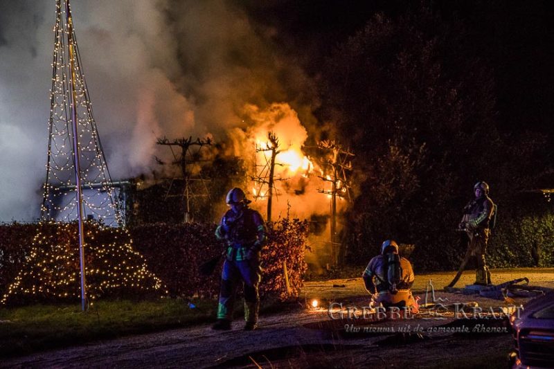 Rhenen – Het jaar 2025 was nog geen 2 uur oud, toen de brandweer van Rhenen werd opgeroepen voor een woningbrand aan de Bergweg. Eenmaal ter plaatste was de brand al uitslaand en werd meteen opgeschaald naar middelbrand en even later zelfs naar grote brand, vanwege de benodigde waterwinning. Ook werden de specialisten van een rietdekkersteam en een hoogwerker uit Veenendaal. Het brandende pand bleek een vrijstaand bijgebouw te zijn. De brandweer heeft niet kunnen voorkomen dat het gebouwtje volledig is afgebrand, maar kon wel voorkomen dat het naastgelegen rietgedekte hoofdgebouw ook vlam vatte. De ambulance dienst heeft 1 persoon gecontroleerd vanwege rook inademing. Over de oorzaak van de brand is nog niks bekend gemaakt.